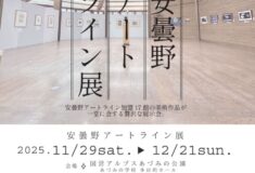 2025.11.25イベント「第21回 安曇野アートライン展」開催国営アルプスあづみの公園(堀金・穂高地区)にて、 アートライン加盟館の有志館が作品を展示します。安曇野市から北安曇郡までの広範囲に点在する施設の作品を一堂に展示、冬季休館中施設の作品もこちらでご覧いただけます。皆さまお誘い合わせのうえ、暖かい格好でイルミネーションとともにお楽しみください。 『安曇野アートライン展in国営アルプスあづみの公園』 期 間 …